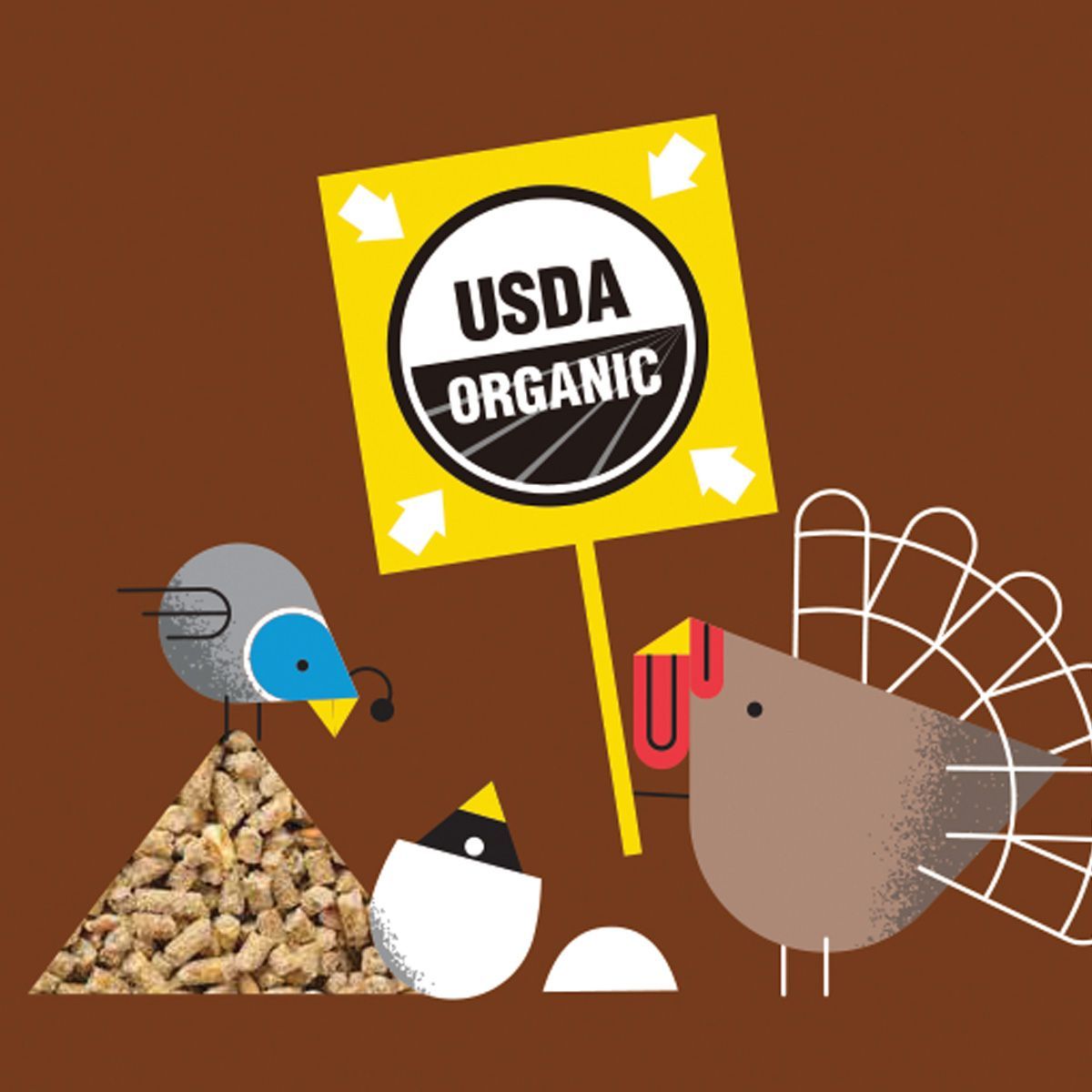 Our organic food for chickens meets USDA requirements guaranteeing it’s made without the use of pesticides, fertilizers, and genetically modified organisms (GMOs).